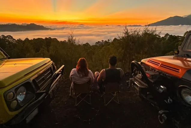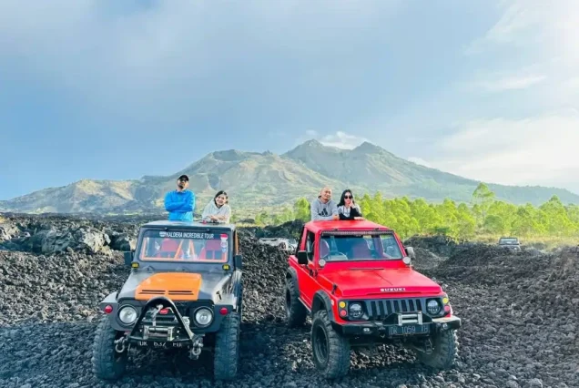 Enjoy a comfortable sunrise tour around Mount Batur by 4WD jeep without the need to hike. Visit volcanic landscapes and enjoy panoramic sunrise views. This tour is perfect for those who want adventure with extra comfort. Book your sunrise experience with *MarviO Tour*.